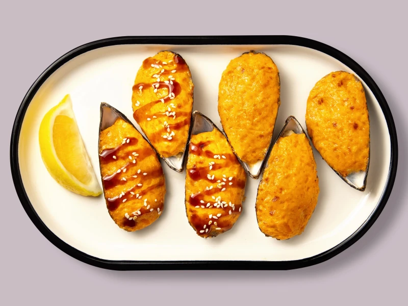 МИДИИ, СОУС ФУДИ, СОУС ФУДИ ОСТРЫЙ, УНАГИ СОУС, КУНЖУТ, ЛИМОН
