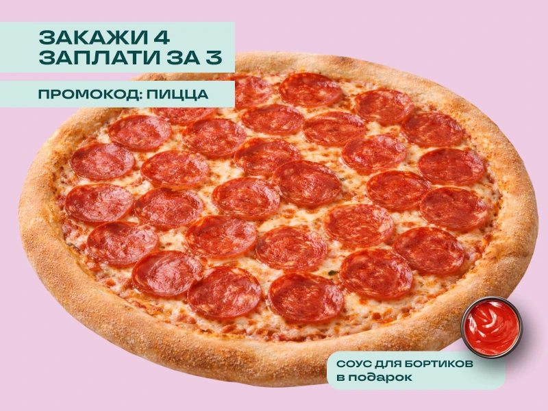 ФИРМЕННОЕ ТЕСТО, ТОМАТНЫЙ СОУС, МОЦАРЕЛЛА, ПЕППЕРОНИ. 33см