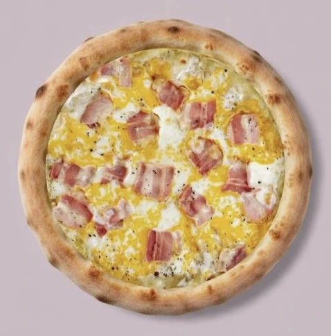 ФИРМЕННОЕ ТЕСТО, СОУС БЕШАМЕЛЬ, МОЦАРЕЛЛА, БЕКОН, ЯИЧНЫЙ ЖЕЛТОК, ПАРМЕЗАН. 33см