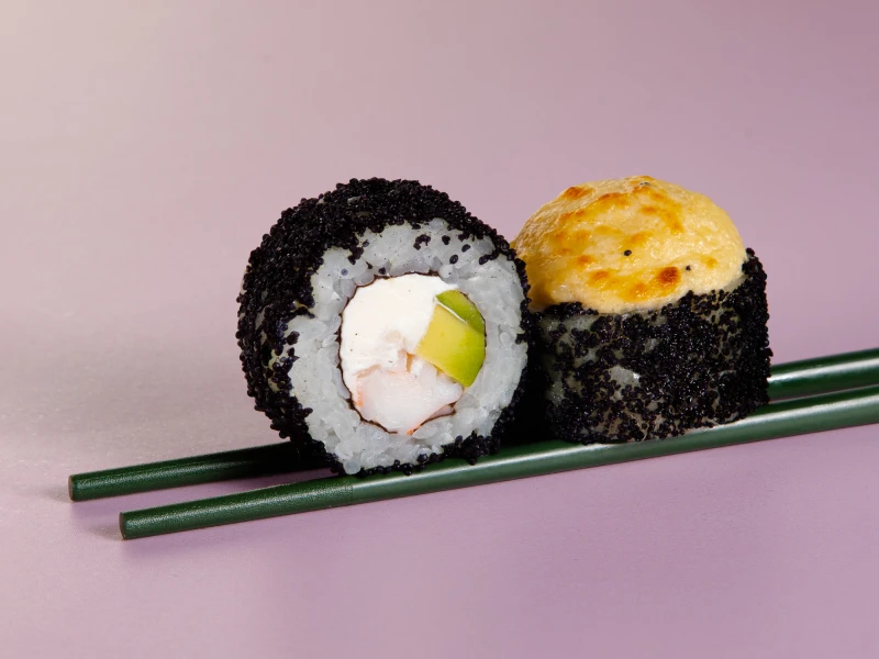 Нори, Рис, сливочный Сыр, Авокадо, Креветка отварная, икра Масаго. ЗАПЕКАЕТСЯ : с Сырным или Яки соусом. + СОЕВЫЙ СОУС 30мл НЕ ЯВЛЯЕТСЯ ГОРЯЧИМ БЛЮДОМ
