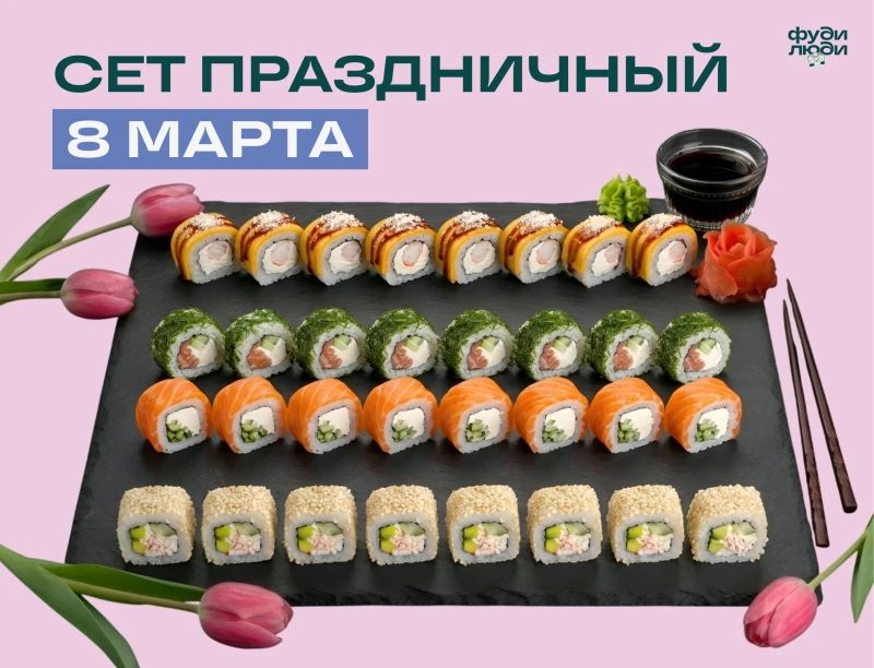 ФИЛАДЕЛЬФИЯ, РОЛЛ 4 СЫРА, РОЛЛ СЛАБОСОЛЁНЫЙ ЛОСОСЬ, КАЛИФОРНИЯ КУНЖУТ. (32 шт) + СОЕВЫЙ СОУС 100мл ИМБИРЬ 25г х2 ВАСАБИ 15г Х2