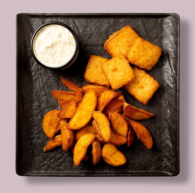 КАРТОФЕЛЬ ПО-ДЕРЕВЕНСКИ, НАГГЕТСЫ ИЗ ФИЛЕ МИНТАЯ, СОУС ТАР ТАР
