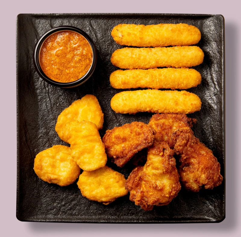 НАГГЕТСЫ КУРИНЫЕ, КУРИНЫЕ КРЫЛЫШКИ, СЫРНЫЕ ПАЛОЧКИ, СОУС ФУДИ BBQ